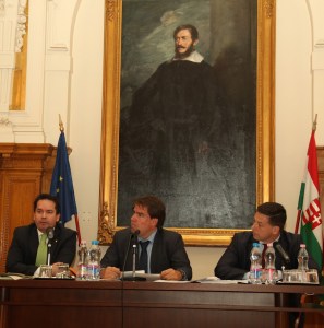 (Fotó: Kollégáink az ajánlóívek leadása előtt a Budapesti Ügyvédi Kamarában).