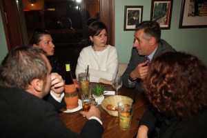 A Kamarandi után kötetlen beszélgetéssel folytatódott az este, majdnem éjfélig. Jöttek-mentek a kollégák, mindenkinek jutott egy pohár remek bor Újvári Zoltán kollégánk jóvoltából, és némi lazacos szendvics is, melyről az esemény helyszínét adó Chagall Étterem gondoskodott. Voltak, akik kinyomtatott programunkkal érkeztek, hogy rákérdezzenek benne arra, ami érdekelte őket, mások az ötleteiket mondták el, megint mások csupán meg akartak ismerni minket.